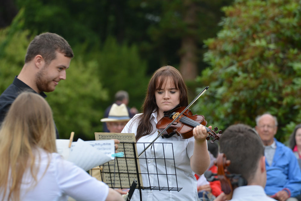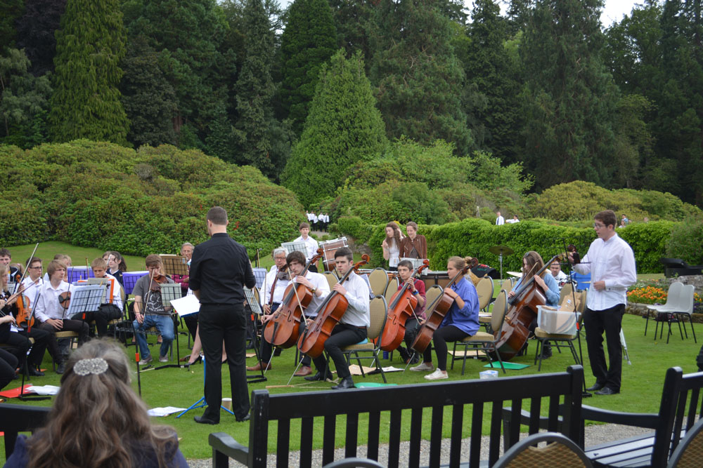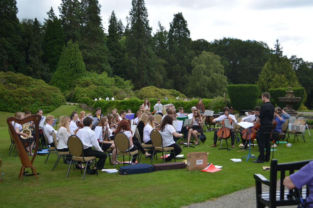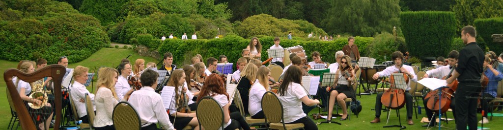 The orchestra groups performed at Gregynog Hall during the summer of 2014.